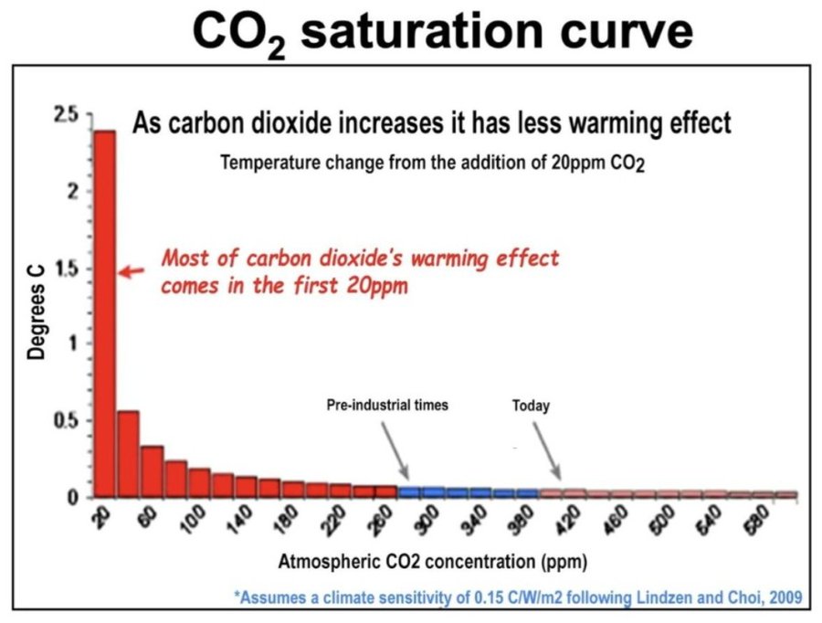 Die gesamte Annahme, dass Kohlendioxid die globale Erwärmung verursacht, ist völlig falsch. Der größte Teil seines Einflusses verflüchtigt sich nach den ersten 20 ppm und danach sinkt er fast auf Null. Es handelt sich um einen absichtlichen PR-Gag, der seit 40 Jahren verwendet wird, um unfähige westliche Nationen zu täuschen und zu bestehlen.