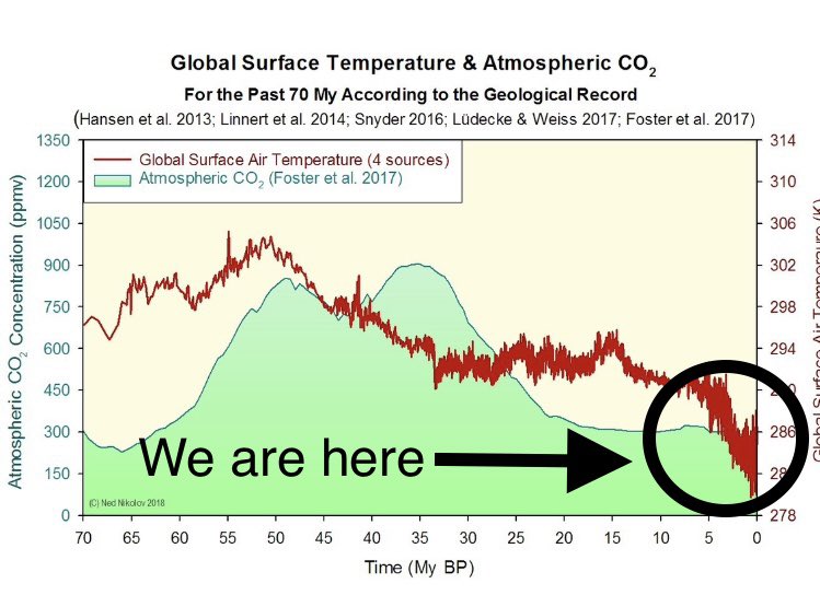 Die Erde begann vor 50 Millionen Jahren abzukühlen, der Kohlendioxidgehalt erreichte im Zeitalter der Primaten 900 ppm und der Mensch entwickelte sich in der heutigen 2,58 Millionen Jahre dauernden Eiszeit.