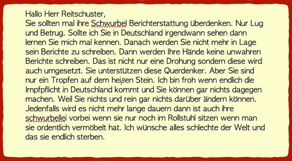 auf den Intensivstationen von Impfverweigerern belegt sind, sondern den Abschaum vor den