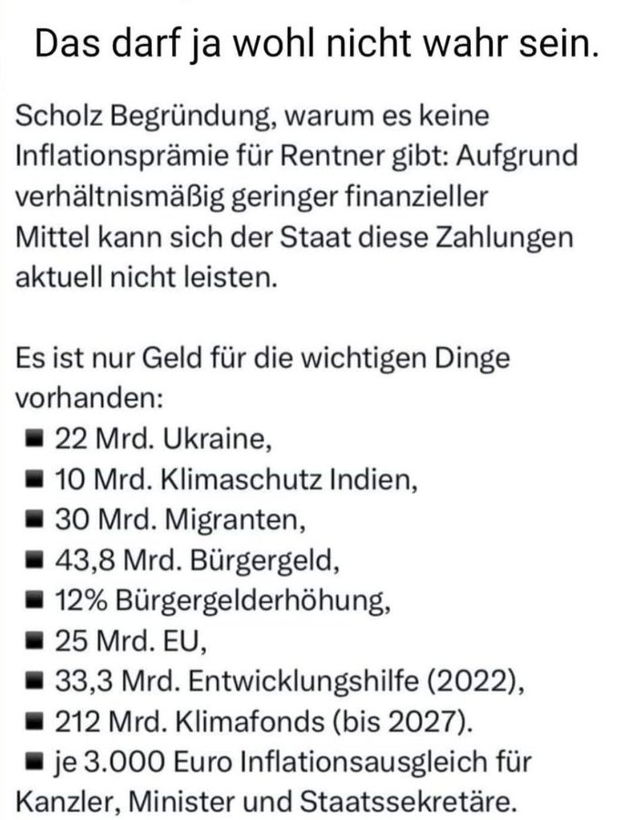Tja , daran müsste jeder erkennen was man dem Staat , den man jahrelang durch seiner Hände Arbeit und der Zahlung von Lohn/Einkommensteuer und sonstigen Abgaben gedient hat , wert ist !