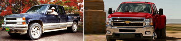 Meine Hold träumt jetzt von dem Viertürer rechts. Wenn der in Deinem Rückspiegel größer wird, meint sie, machst Du auch mit Deinem lausigem Rolls Royce oder Ferrari flott Platz. Aber sie will wieder das Silverado-Dunkelblau. Das sieht ihrer Meinung nach gewaliger aus, und Keiner ahnt, daß eine zierliche Dame drin sitz, die Jeder meint rum schubsen zu können.