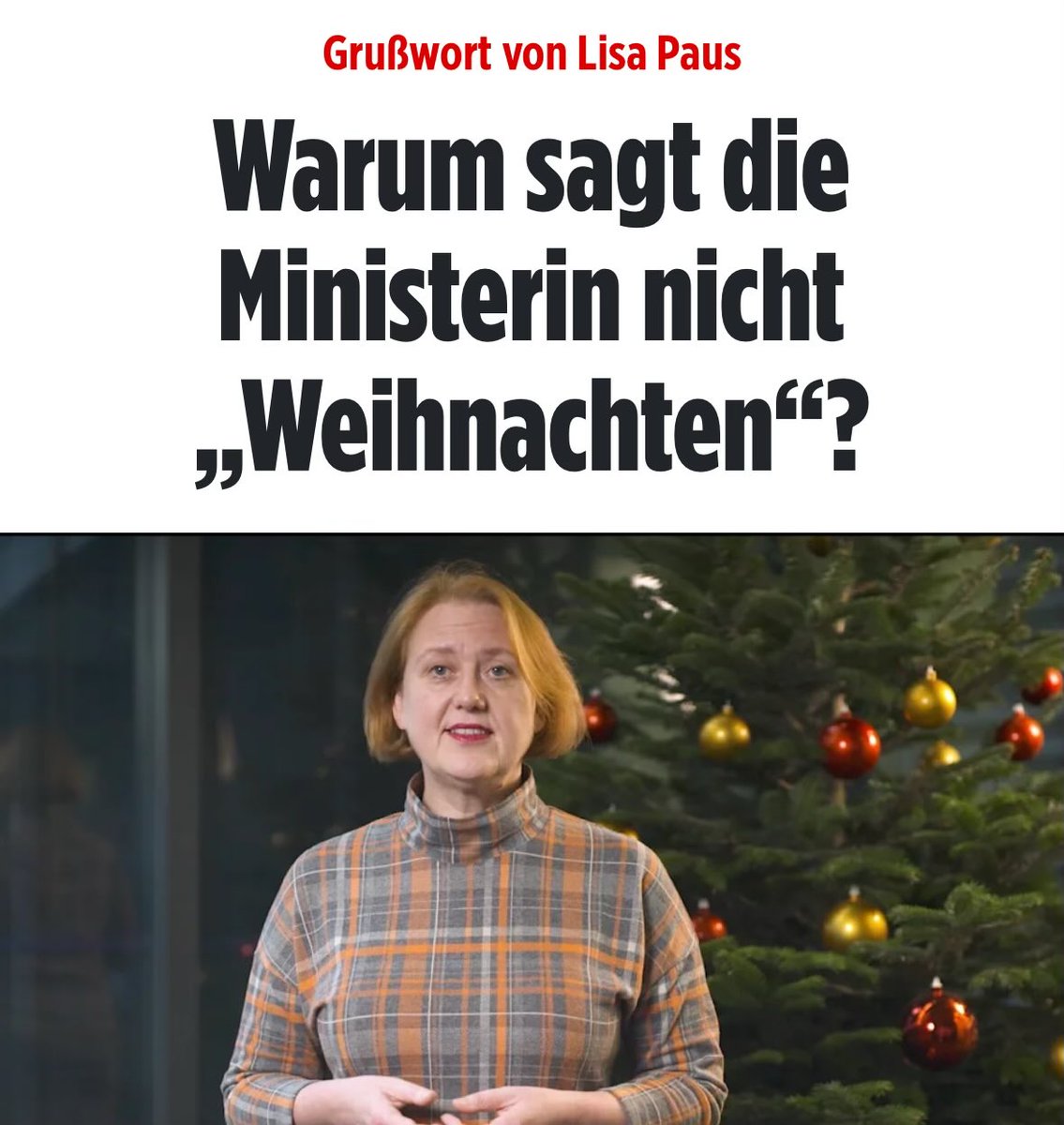 Ausgerechnet die grüne Familienministerin wünscht zu Weihnachten lediglich „die Feiertage am Ende des Jahres“.