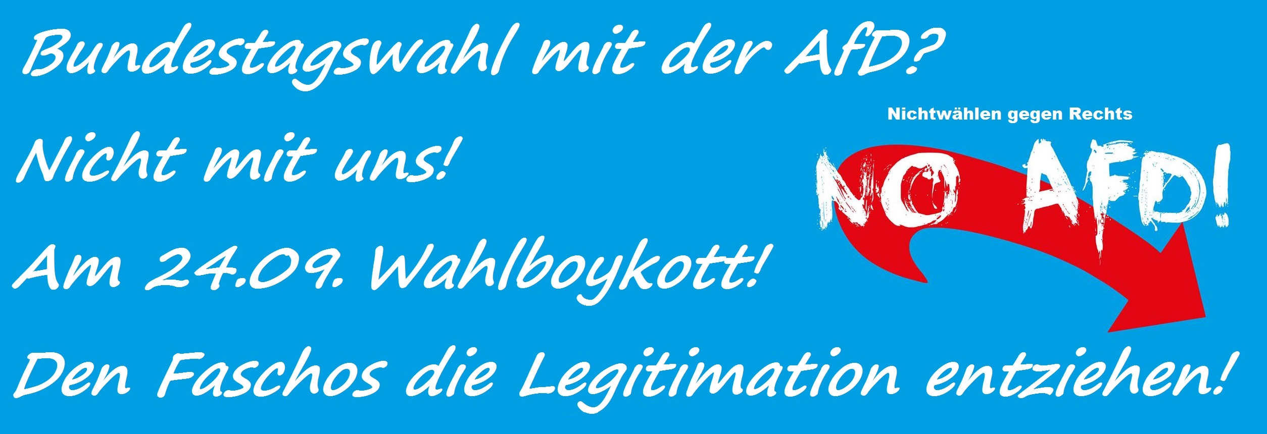 Das ist allerdings eine leider weit verbreitete und gefährliche Fehlannahme. Man darf diesen Faschisten schlicht keine Bühne bieten, indem man sie als vermeintlich legitimen Teil des Parteienspektrums behandelt. Als wahrer Demokrat sollte man dementsprechend Wahlen an denen solch widerwärtige rechtsradikale Parteien wie die AfD und NPD teilnehmen grundsätzlich boykottieren und ihnen so die Wahl als demokratische Bestätigung und damit auch die Legitimität nehmen.