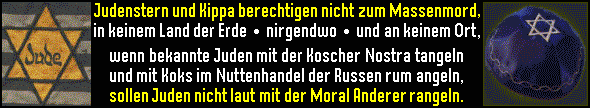Nur ist unklar, wieso in Europa Juden stolz Kippa tragen, dieweil ihre Besoldeten oder gar sie selbst an Monitoren mit Fernlenkwaffen unschuldige Palästinenser ermorden, Frauen und Kinder, Schüler und Lehrer in Schulen und sogar Patienten, Ärzte und Personal in Kliniken, was vielen unserer jüdischen Freunde, teils Freunde seit meiner Schulzeit, die Schamesröte ins Gesicht treibt.