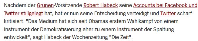 Der Parteichef der Grünen, Robert Habeck, hat seinen Abschied von Twitter und Facebook verkündet – nachdem er erstmals so etwas wie Gegenwind kennengelernt hatte. Seine Begründung wirft Fragen auf. Kann man einem Politiker, den die sozialen Netzwerke nach eigenem Bekunden so aggressiv machen, dass er sie meiden muss wie ein Trinker die Flasche, Verantwortung übertragen?
