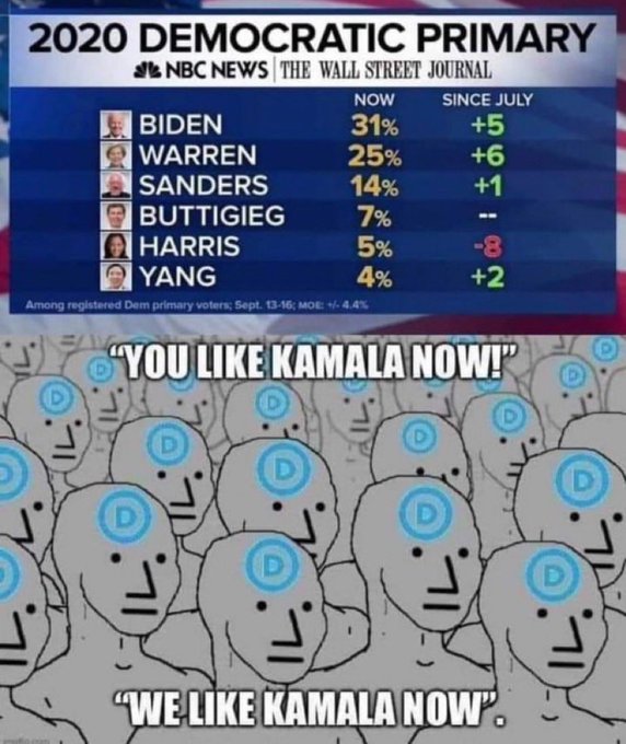 Reporter: But I got to ask you about Kamala Harris. How you feel about her?