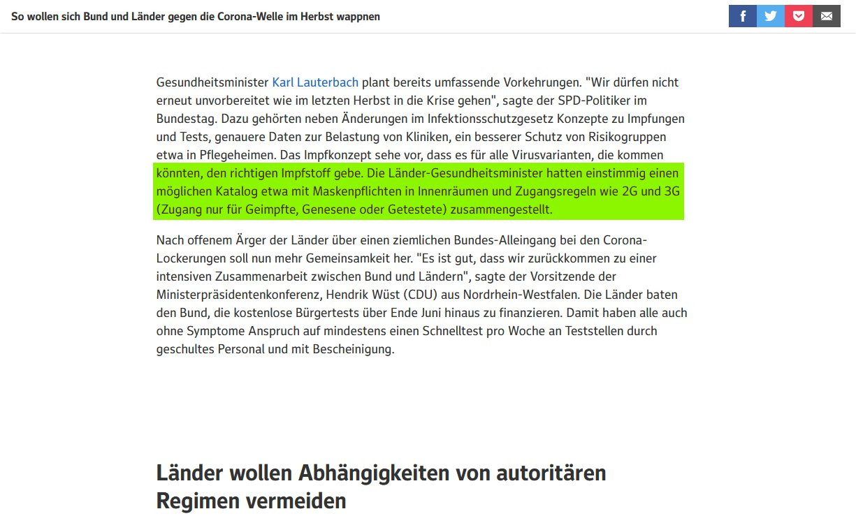 Ein aktuelles Beispiel aus dem orwellschen Imperium der Lügen: Die Fortsetzung der Corona-Diktatur wird für den Herbst vorbereitet. Wieder der Raub der Grundrechte, wieder eine Diskriminierung Ungeimpfter, wieder ein verstecktes Sozialkreditsystem durch diese Maßnahmen und wieder die Nötigung der Bürger, ihr elementarstes Recht, das Recht auf körperliche Unversehrtheit, aufzugeben. Und das alles für die Pharmamafia und ihre korrupten Politikdarsteller wie Lauterbach, Adolf Scholz und Co.