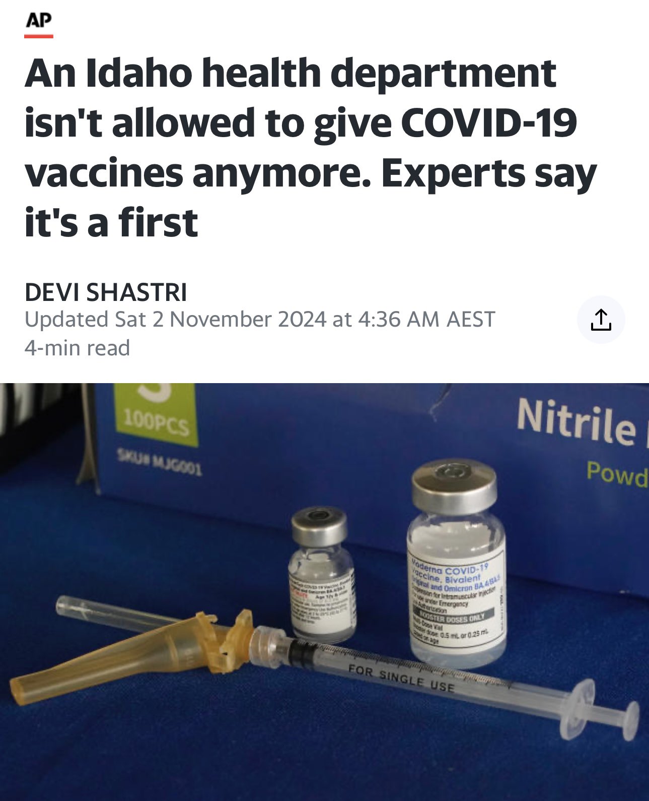 Muessen sie auch, die Profite von BigPharma und damit das sehr wichtigen Lobbyisten, fuer die Gehaelter der Politiker und wichtige Buerokraten, sinken wohl wieder. In den USA hat der erste Staat die COVID-Impfungen entfernt: