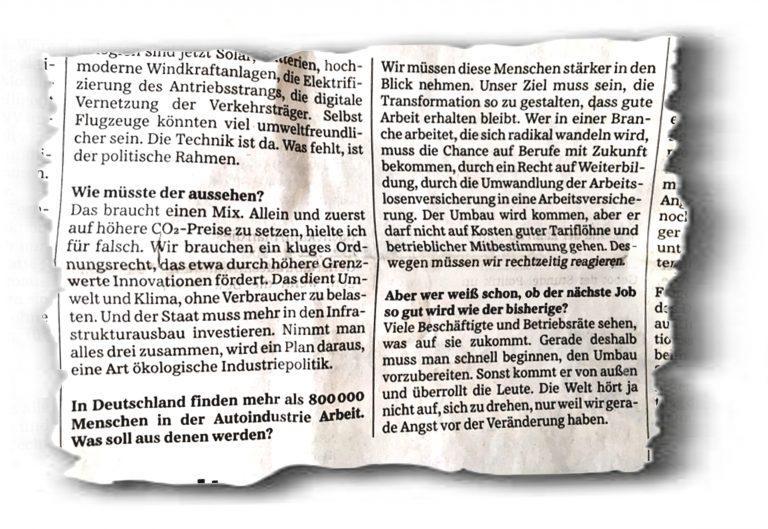 interviewte die „Süddeutsche Zeitung“ den Grünen Anton Hofreiter, unter anderem zum Thema Autoindustrie. „In Deutschland finden mehr als 800 000 Menschen in der Autoindustrie Arbeit. Was soll aus denen werden?“, fragte das Blatt. Worauf Hofreiter antwortete beziehungsweise drohte : „Wir müssen diese Menschen stärker in den Blick nehmen.“ Weshalb und wozu? Hofreiter: „Unser Ziel muss sein, die Transformation so zu gestalten, dass gute Arbeit erhalten bleibt. Wer in einer Branche arbeitet, die sich radikal wandeln wird, muss die Chance auf Berufe mit Zukunft bekommen, durch ein Recht auf Weiterbildung, durch die Umwandlung der Arbeitslosenversicherung in eine Arbeitsversicherung.“
