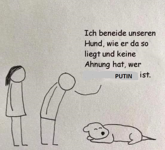 Aber jetzt schreibe ich auch mal was über Putin den ganzen Herbst habe ich gelesen dass er tot ist jetzt ist doch wieder nicht tot also ihr müsst euch schon mal entscheiden