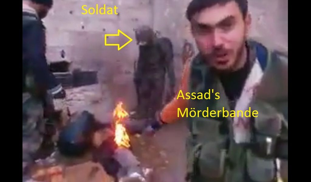 Genauso wie die Leichenschändung eines getöteten Demonstranten hier durch die glorreiche Assad Armee.