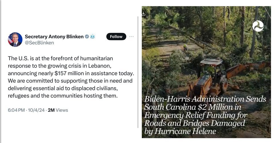 Gleichzeitig wird im Netz ueber die Ueberflutung diskutiert, wo die Menschen vom Staat unter Biden-Harris im Stich gelassen werden. FEMA stoert, behindert Hilfslieferungen, hat kein Geld fuer die Flutopfer, wohl auch weil der BorderZar Kamal Harris die Gelder von FEMA ausgegeben hat, um illegale Einwanderer ueberall im Lande zu verteilen, insbesondere in Swing-Sates. Ich habe noch nie so eine korrupte Regierung gesehen im Westen. Eine echte Bananenrepublik.