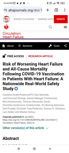 The total study population comprised 101 786 patients. The median age of the study population was 74 years (interquartile range, 66–81). The standardized risk of all-cause mortality within 90 days was 2.23% (95% CI, 2.10%–2.36%) in the vaccinated cohort and 2.56% (95% CI, 2.43%–2.70%) in the unvaccinated cohort (90-day risk difference, −0.33% [95% CI, −0.52% to −0.15%]). The standardized risk of worsening heart failure within 90 days was 1.10% (95% CI, −1.01% to 1.19%) in the 2021 (vaccinated) cohort and 1.08% (95% CI, 0.99%–1.17%) in the 2019 (unvaccinated) cohort (risk difference, 0.02% [95% CI, −0.11% to 0.15%]). No significant differences were found regarding venous thromboembolism or myocarditis.