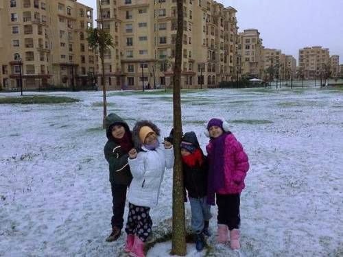 Ägypten ist nicht gerade für Schnee bekannt. Im Gegenteil, es herrscht dort ein heisses Klima mit ausgedehnter Wüste. Aber was erleben die Bewohner von Kairo gerade? Sie frieren, denn Schnee ist auf die Stadt gefallen und hat alles weiss bedeckt. Ein sehr seltenes Ereignis, das erste Mal seit über 122 Jahren!!! Die meisten Ägypter haben noch nie Schnee in ihrem Leben gesehen. Jetzt bauen die Kinder Schneemänner, bewerfen sich mit Schneebälle und lachen.