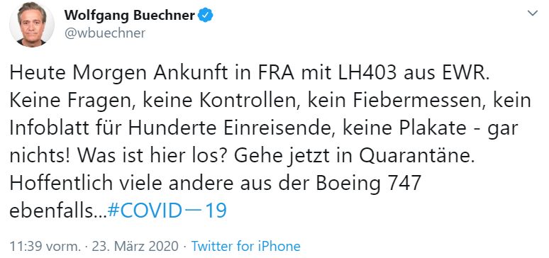 Es gibt einfach gar keine wirkliche Quarantäne. In Österreich wars dasselbe. Großes Polit-Gequassel, aber der Airport war gleichzeitig aus diversen Seuchengebieten ohne jegliche Kontrolle bei Ankunft offen. Ausserdem werden diverse Grenzgänger ja auch nicht wirklich kontrolliert.
