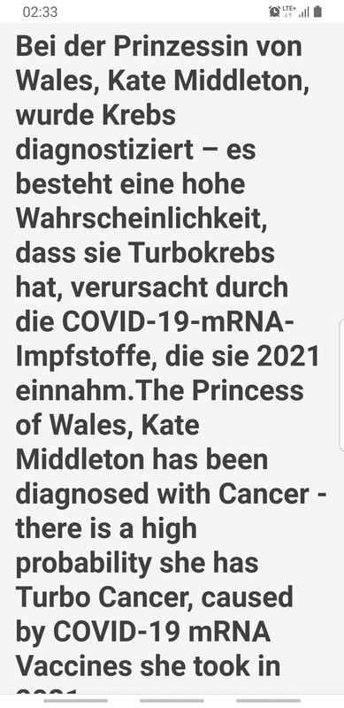 Ich sehe von dir keine Belege, mein Beleg ist die Aussage von Drosten. Irgendwelche Vollhonks bringen jetzt die Krankheit von Kate mit Impfung in Zusammenhang.
