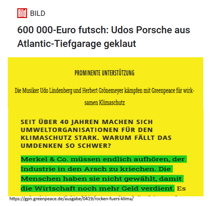 Allerdings kommt heraus, dass Lindenberg einen 680 000 € teuren Porsche fährt. Natürlich nur, um ein Klima zu retten!