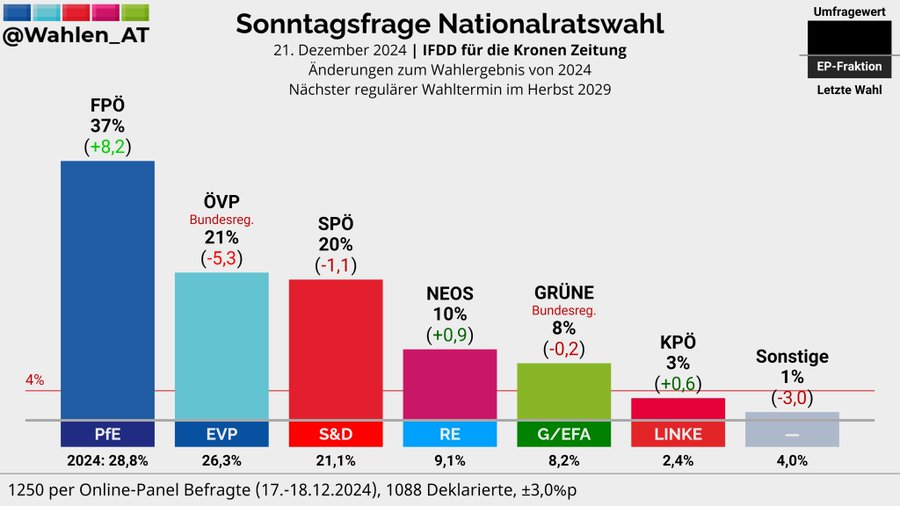 Seit der Wahl vor 3 Monaten schon wieder 8% dazugewonnen!