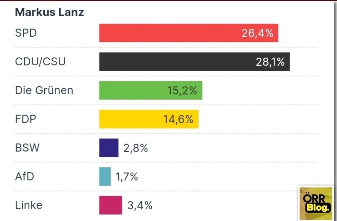 Im Vergleich zu den Umfragen SPD und FDP stark überrepräsentiert, AFD stark unterrepräsentiert.