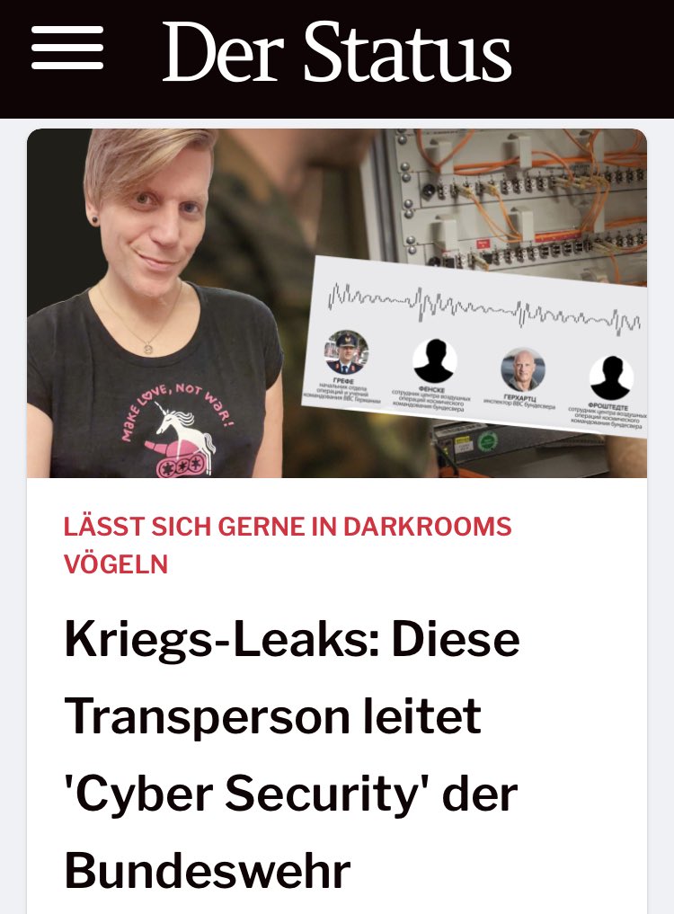 Der olle Kiesewetter gerade im Bericht aus Berlin..das ist nur die Spitze des Eisbergs, wir müssen davon ausgehen dass Russland tief in unsere Sicherheits- und Verteidigungssysteme eingedrungen sind....