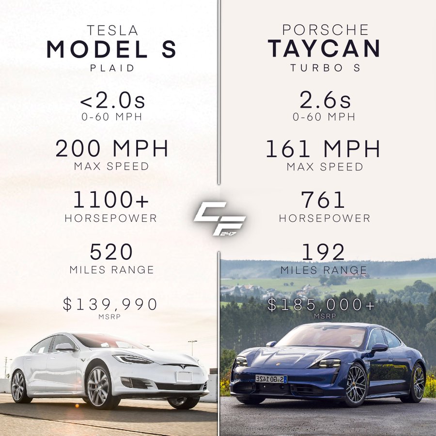 @BlackForrester hat Autos des selben Herstellers und desselben Modells verglichen. Daß 1.100 PS natürlich schneller beschleunigen und auch in der Endgeschwindichkeit höher sind, als 761 PS, ist doch klar wie Kloßbrühe!!