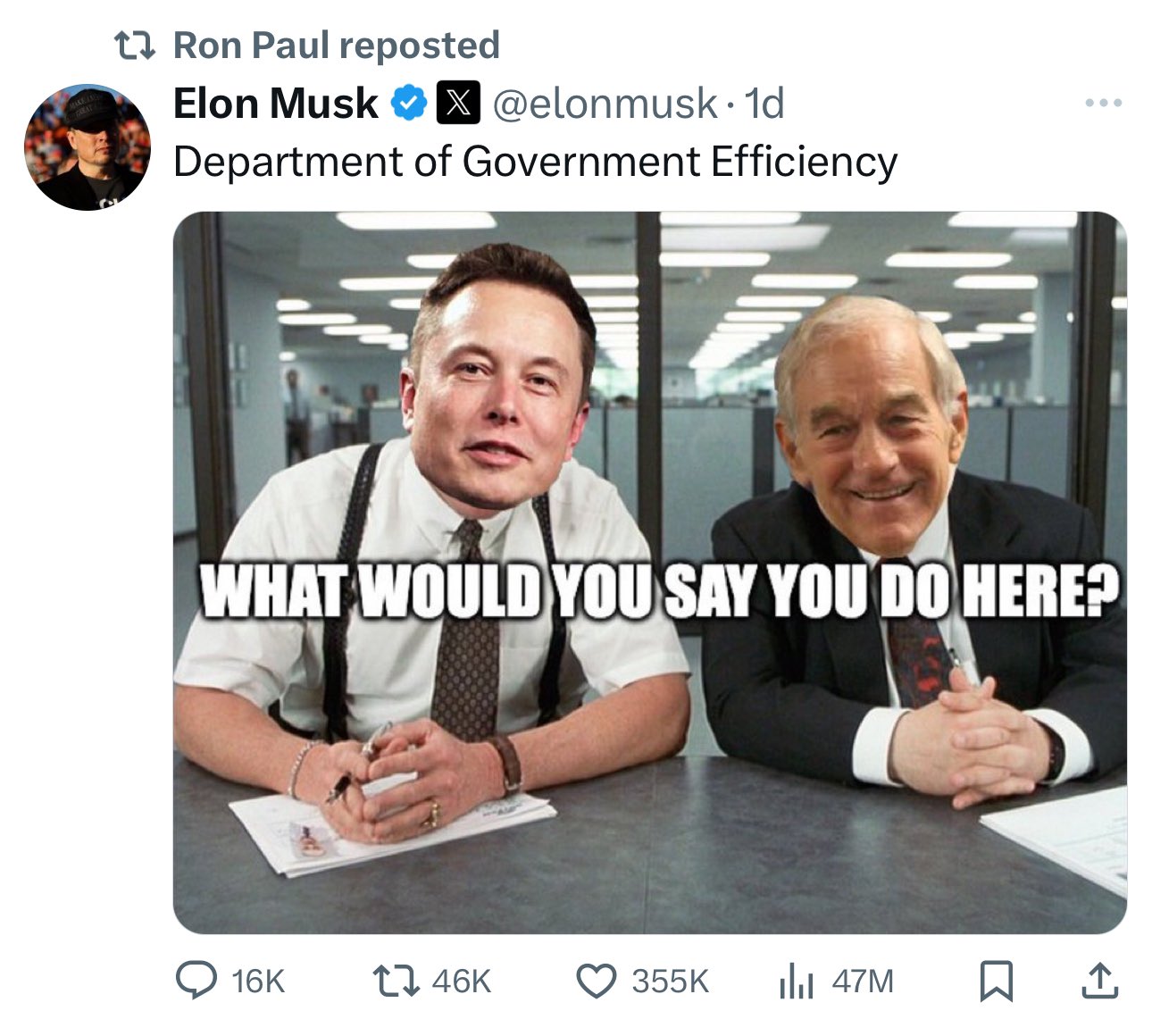 Jetzt wird Musk das politische Handwerk lernen und ich würde fast darauf wetten, in 4 Jahren selbst kandidieren und Präsident werden.