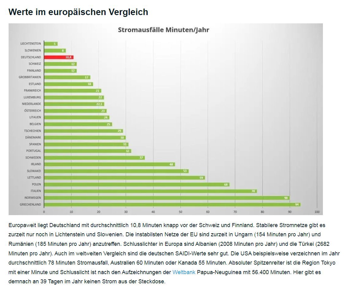 Deutschland hat eines der zuverlässigsten Stromnetze!