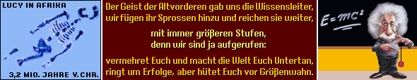 Aber mit Gott haben sie bei Pastoren-Töchterchen und SED-Pfaffen als Präsident die Arschkarte gezogen. Einstein hatte schon erkannt: "Gott würfelt nicht!" Natürlich nicht, da er ja eine Münze wirft, wenn er mal zu entscheidungsfaul ist. So wie damals bei Lucy: aus ihren Nachkommen wurden Leute wie unten die 25, Kotzfisch, Pythia oder Konfuzius, und Einpeitscher bei Grünen und Marxisten wie Fischer, Stalin und Mao.