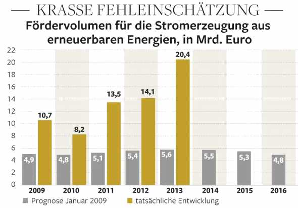 Bei den Kosten pro Haushalt versprachen die Interessenvertreter der Ökostrom-Industrie den Verbrauchern ebenfalls das Blaue vom Himmel herunter: Nur mit 1,4 Cent pro Kilowattstunde werde ein Haushalt im Jahr 2013 belastet