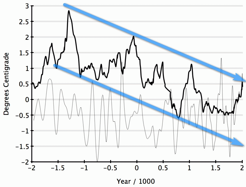 Das ist die völlig natürliche Erholung von der Kleinen Eiszeit, um danach weiter in Richtung Eiszeit zu steuern: