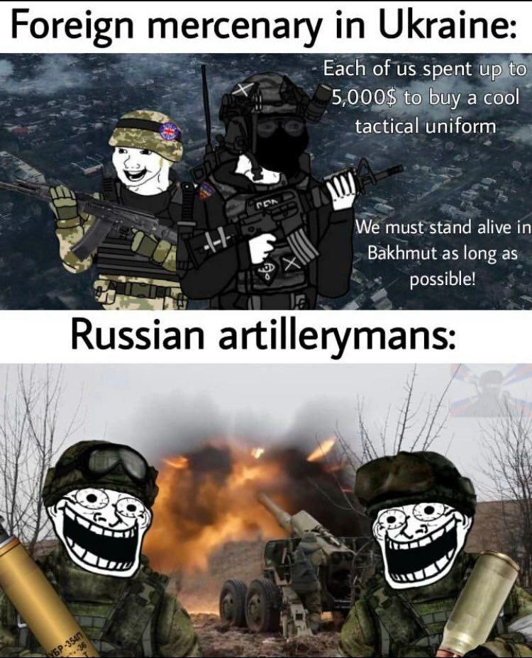 Willkommen im russischen Artilleriekrieg liebe ukrainische Söldner mit bester und teuerster Körperpanzerung.