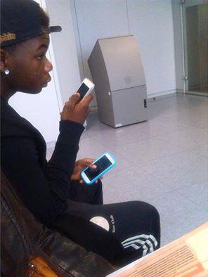 Hier ein “bettelarmer, traumatisierter” Asylbewerber auf einem deutschen Ausländeramt. Das eine ist ein iphone, das andere ein großes Galaxy (Summe ca. 1000€)