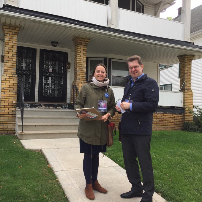 Bei deutschen Sozialisten dagegen ist es völlig normal, sich in den Wahlkampf anderer Länder einzumischen: Stegner beim Klinken putzen, Wahlkampf USA 2016
