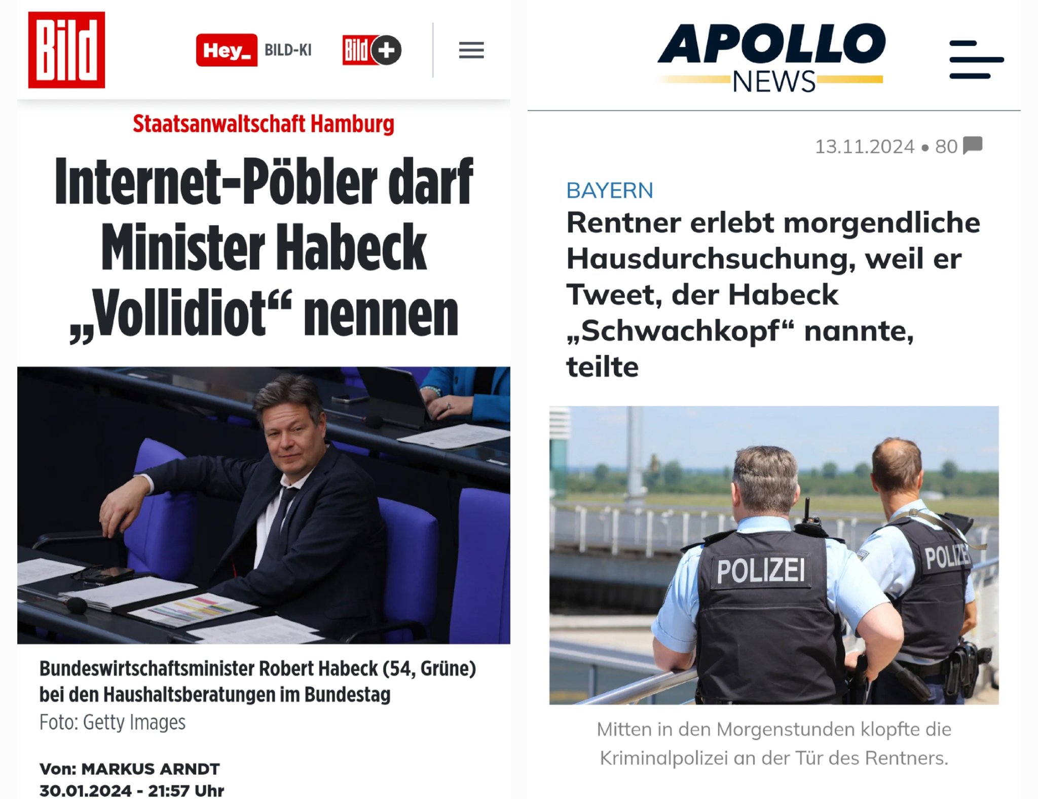 Weil er Habeck „Schwachkopf“ nannte: Hausdurchsuchung im Morgengrauen wegen VolksverhetzungZitat: