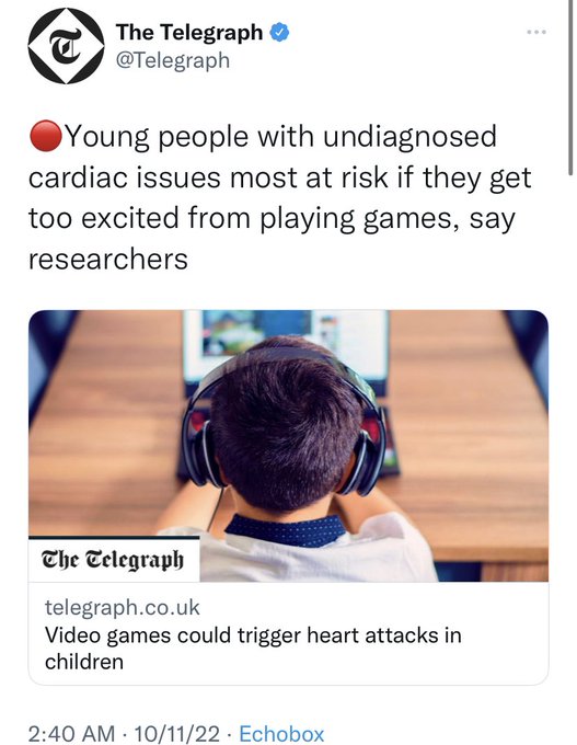 "young people with undiagnosed cardiac issues most at risk if they get too excited from playing games, say researchers"