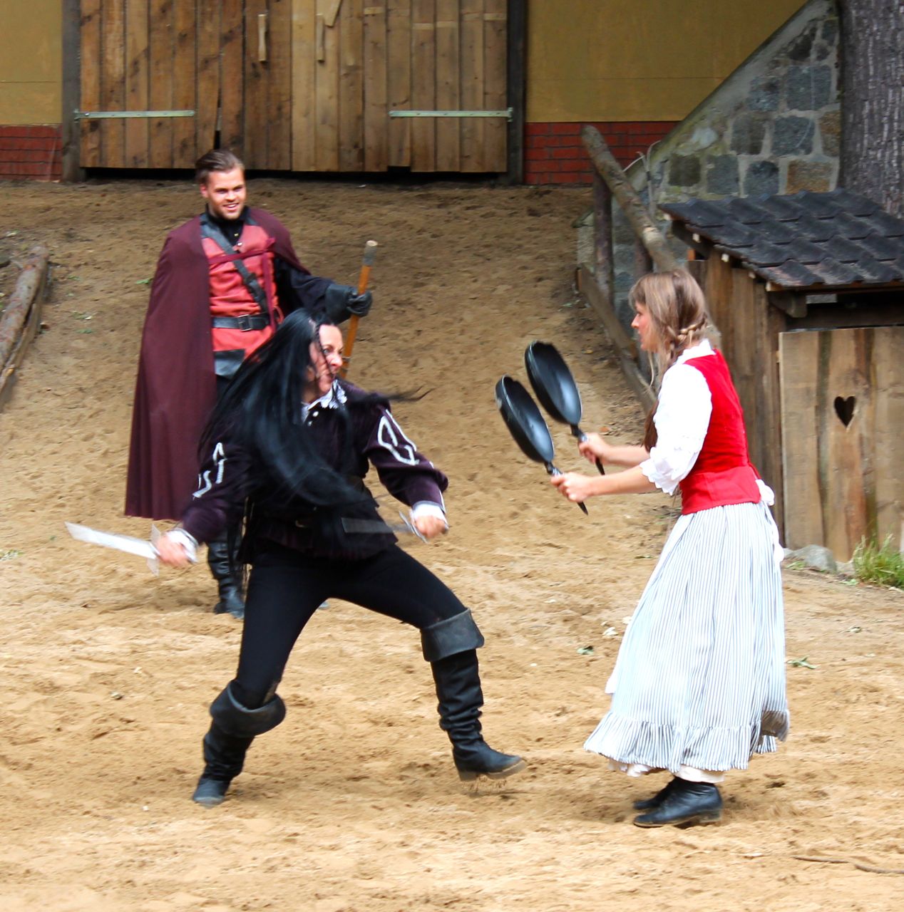 und im Nahkampf werden Gerätschaften eingesetzt die - sogar in den Händen von Frauen - tödliche Verletzungen hervorrufen können.