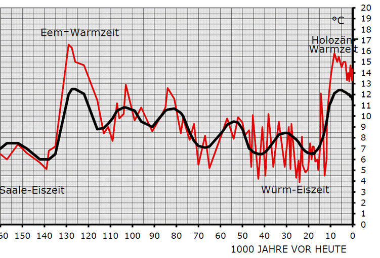 Meldet die Tagesschau heute. Mag sein. Damals folgten auf die Saale-Eiszeit ein rasanter Temperaturanstieg und die kurze Eem-Warmzeit.