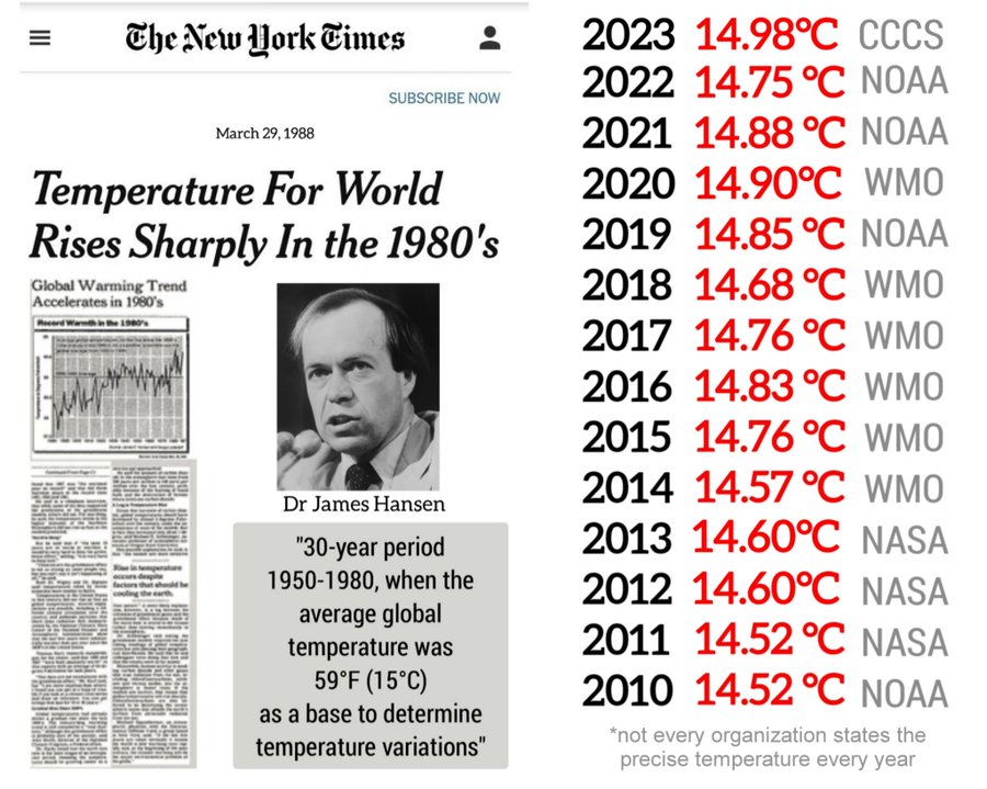 Die „globale Temperatur“ ist immer noch kühler als der Basiswert der NASA von 1950–1980 von 15 °C.