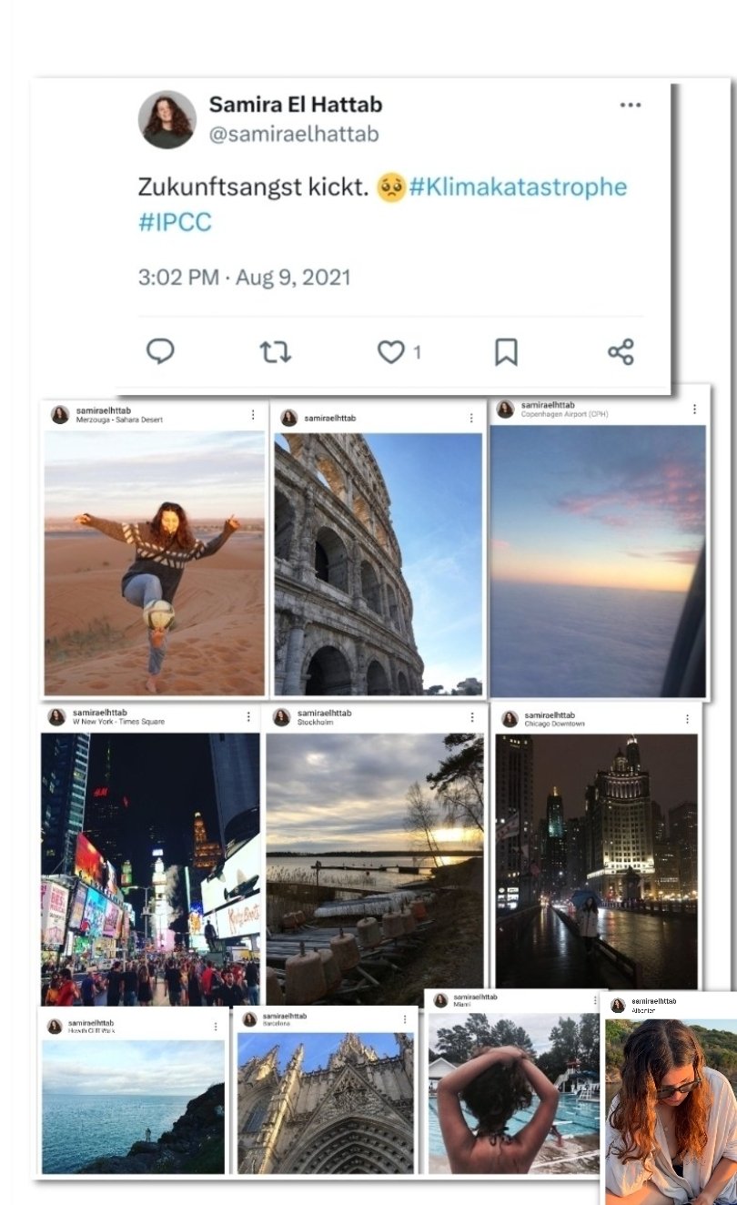 Auf Instagram zeigt sie ihre Reisefotos aus Rom, Kopenhagen, New York, Stockholm, Chicago, Dublin, Barcelona, Miami und der Wüste Sahara. Aktuell macht die Klimajournalistin Urlaub in Albanien.