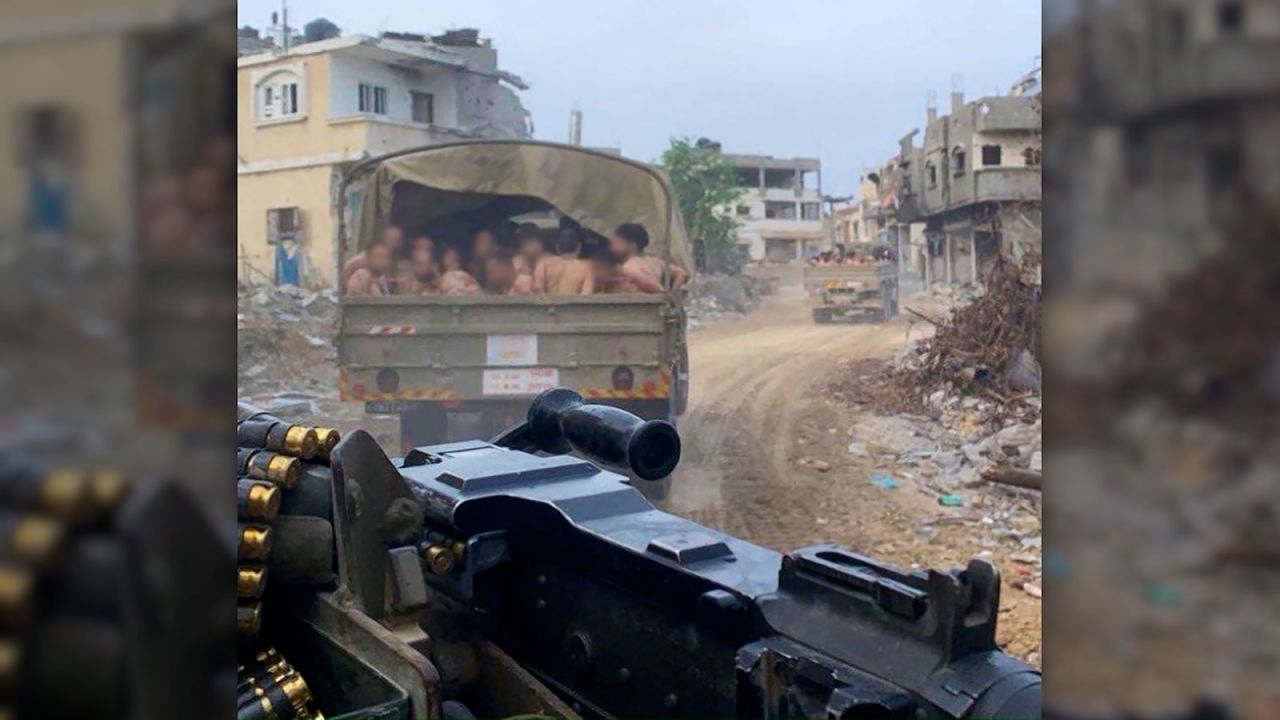 Bilder aus Gaza, die am Donnerstag in den sozialen Medien kursierten, zeigten eine Massenfestnahme von Männern durch das israelische Militär. Diese mussten sich bis auf die Unterwäsche ausziehen, auf der Straße knien, Augenbinden tragen und sich auf die Ladefläche eines Militärfahrzeugs quetschen.