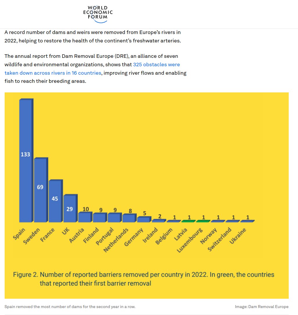 The Spanish government has been dismantling dams at a furious rate, in line with the EU's wishes. In 2021 it got rid of 108 dams and weirs. In 2022, another 133 were demolished. According to Dam Removal Europe, a coalition of seven green pressure groups, Spain has been a leading exponent of dam removal. Last year it was second only to France, and the year before that it topped the EU league for dismantling them.