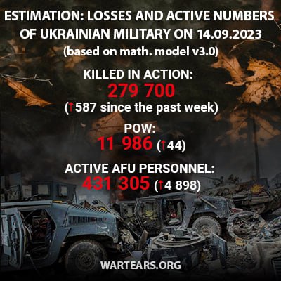 Gleichzeitig wird unsere Schätzung immer um ein Vielfaches geringer sein als die unwiederbringlichen Verluste (= Tote, Gefangene und Verwundete, die nicht weiter dienen können ) und darüber hinaus die Gesamtverluste (zusammen mit den Verwundeten, die nach einiger Zeit wieder in den Dienst zurückkehren können).