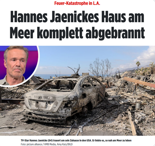 Das Feuer hat immerhin seine doch so angeblich-Klima-schändlichen Flugreisen in die USA erstmal beendet