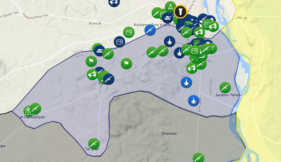 SDF und "Rebellen" sind in Amarinah aufeinandergetroffen. Das ist südlich von Jarablus. Kein IS weit und breit. :)