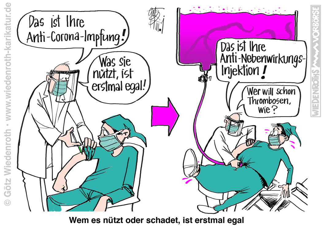 Es geht um den Widerspruch. Wenn man uns mit dem Impfstoff schaden wollte und wenn es sich um einen globalen Plan handelt und wenn man die Macht hat, das alles zu vertuschen, ergibt es überhaupt keinen Sinn, dass in vielen Staaten die Impfung mit der Sternensuppe ausgesetzt wurde. Das behaupten hier aber Leute in diesem Zusammenhang.
