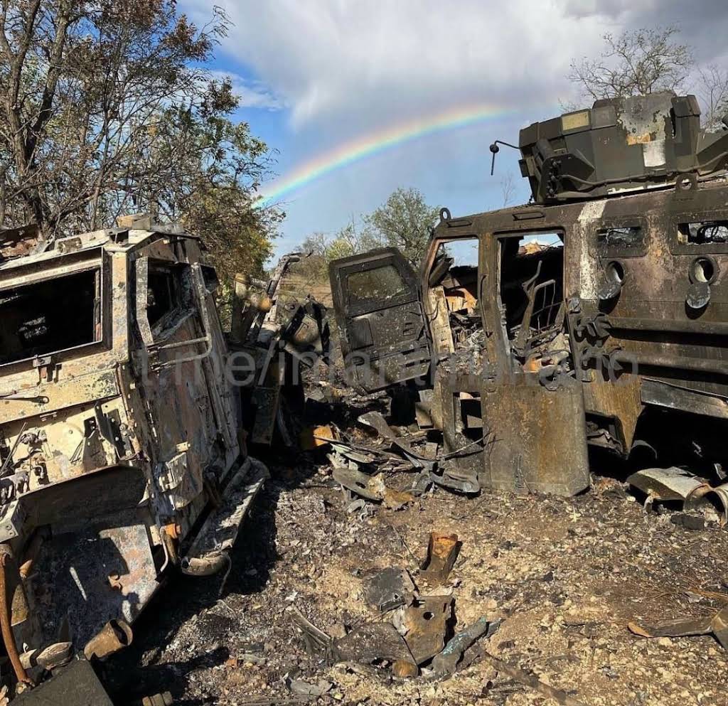 Zerstörte gepanzerte Fahrzeuge Husky TSV und Kozak-2 der ukrainischen Armee