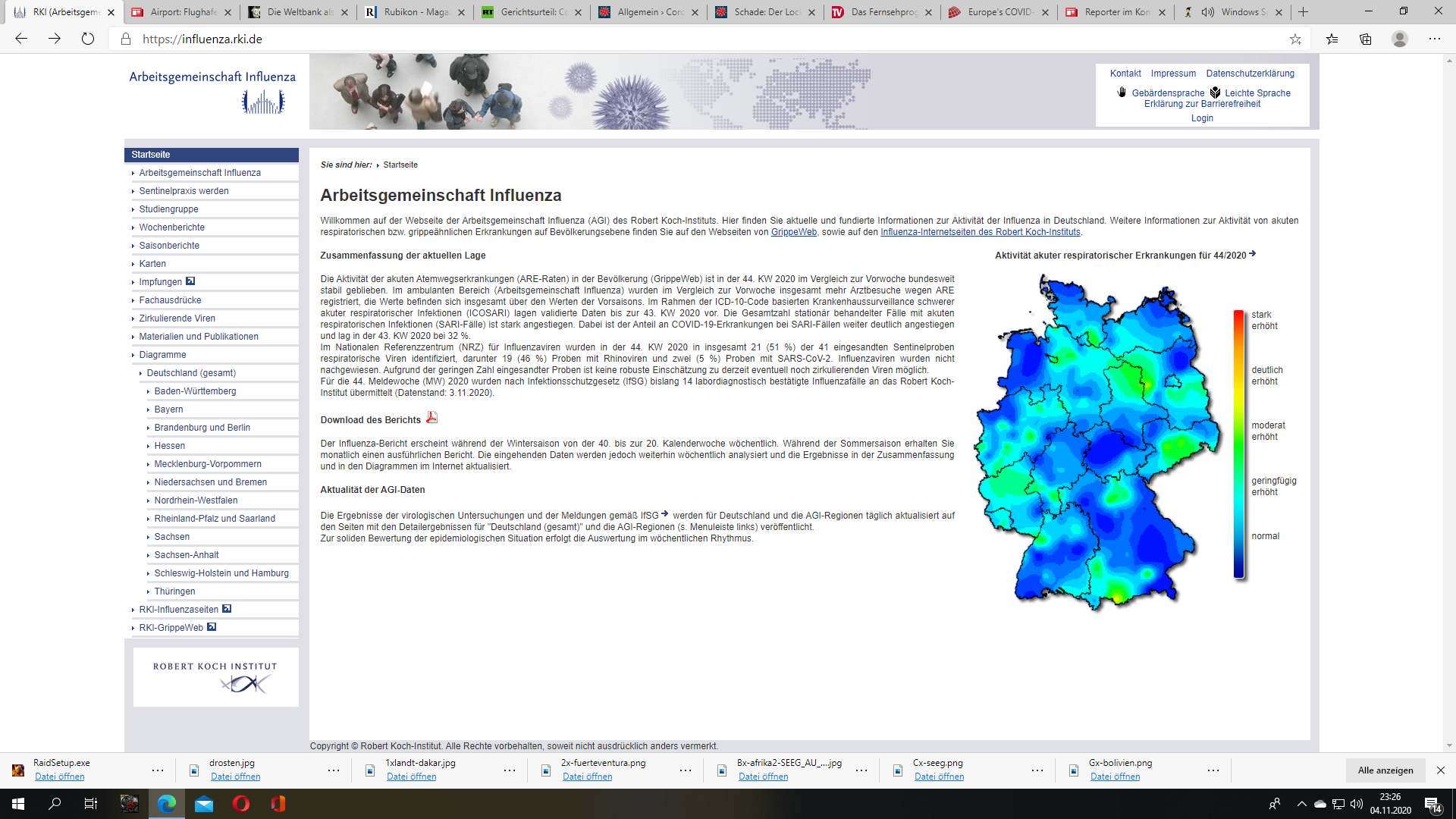 RKI Karte. Alles im Super Blauen Bereich, also sehr niedrige Grippe Welle, usw.. Blauer Bereich.