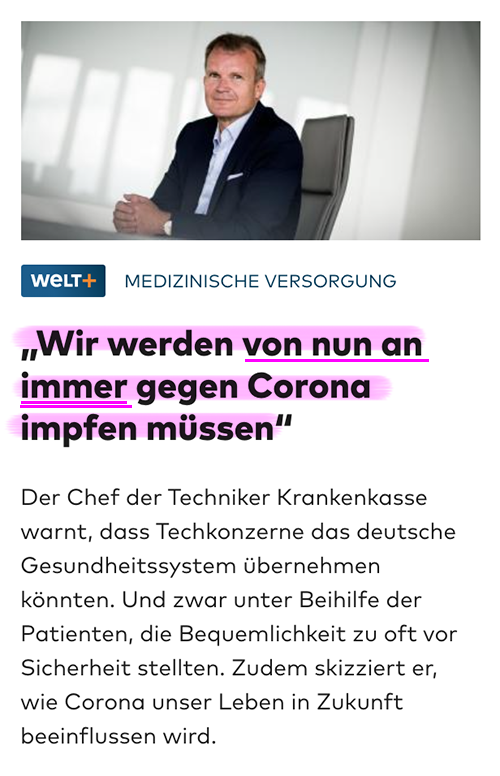 Das befriedigende bei den Impfgegnern ist ja die natürliche unausweichliche Konsequenz das sie sich früher oder später mit Corona infizieren werden. Vllt verläufts glimpflich, vllt liegen sie dann aber auch röchelnd auf der Intensivstation und rufen nach ihrer Mami....es ist wirklich das einzige auf das in der irrationalen Welt von heute noch Verlass ist, die Naturgesetze sind nicht veränderbar auch nicht durch Dummheit - die Evolution und die natürliche Auslese verrichten ihr Werk...jedes mal wenn so ein Spinner wieder seinen Psalm zum Sonntag abgibt lache ich mir ins Fäustchen und denke......der Virus findet dich schon...nur ne Frage der Zeit :D
