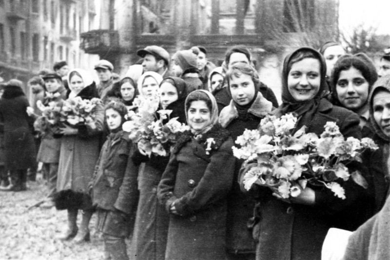 Überall werden die Sowjetsoldaten als Befreier herzlich begrüßt