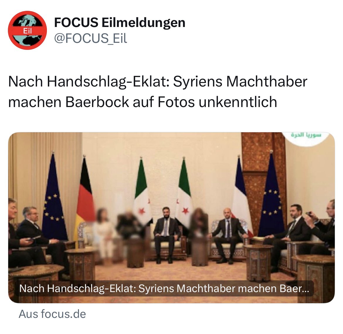 Die neue syrische "Regierung" habe ich nachweislich noch nicht politisch eingeordnet oder gelobt, da warte ich erst einmal ab und trinke Tee.